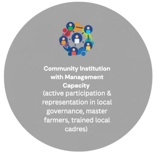 Organizing the poor and investing in their leadership and management capacity at all levels. We promote strong women based community institution and collectives across our geographical locations. After organizing the poor women into SHGs, we develop their capacity to run their own institutions. SHGs within 2-3 kms together form clusters at Panchayat level. Further clusters within 20-30km form federations. The objective behind the promotion of community institutions is to make the program sustainable. These community institutions, starting from base to top, work collectively and without our support, for the benefit of their members. They also negotiate collectively with other stakeholders & access services for their members. These institutions become the foundation to promote commercial organisations with SHG members as shareholders, farmer producer companies registered legally.